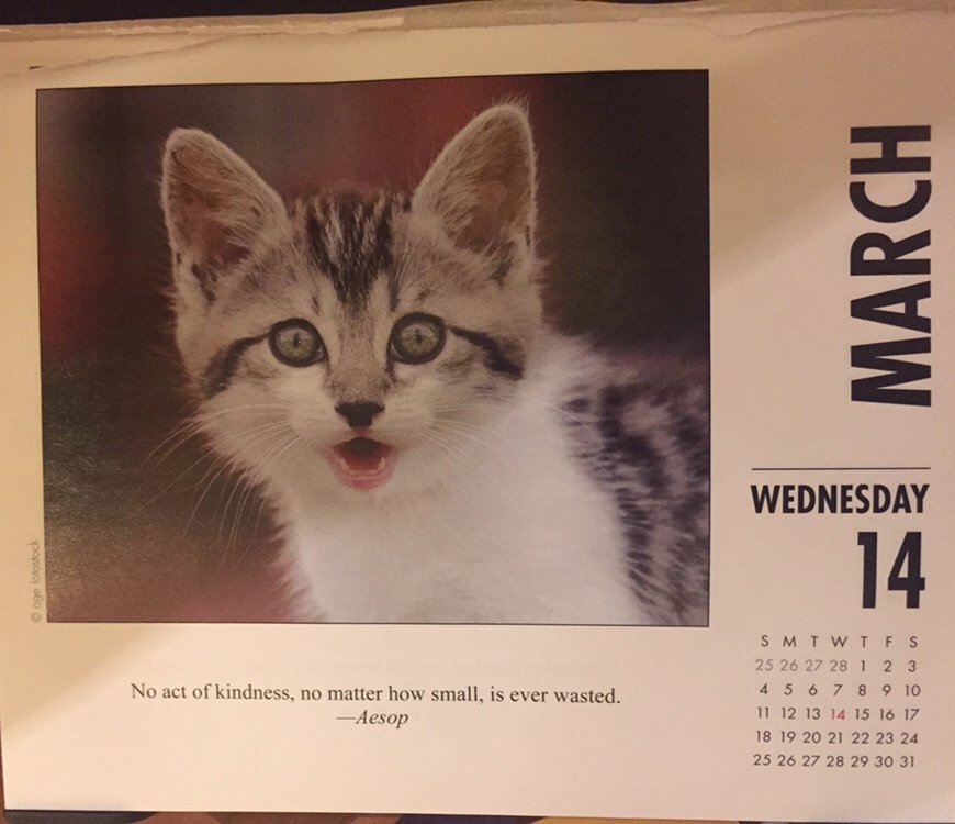 Yesterday was a busy day. As such i didn’t get a chance to reflect upon my cat calendar quote of the day that challenged me from the second I saw it. For that reason this post is late. (I also preached a sermon on 2 Corinthians 5:20 to practice preaching which added to the busyness yesterday.)